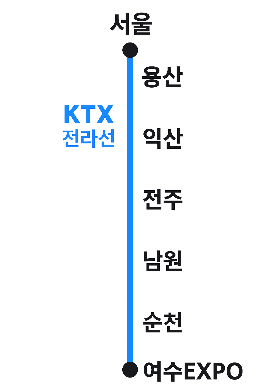 서울(용산)–전주–남원–순천–여수EXPO까지가 KTX 전라선 주요 구간이며, 구간별 요금이 상이합니다.